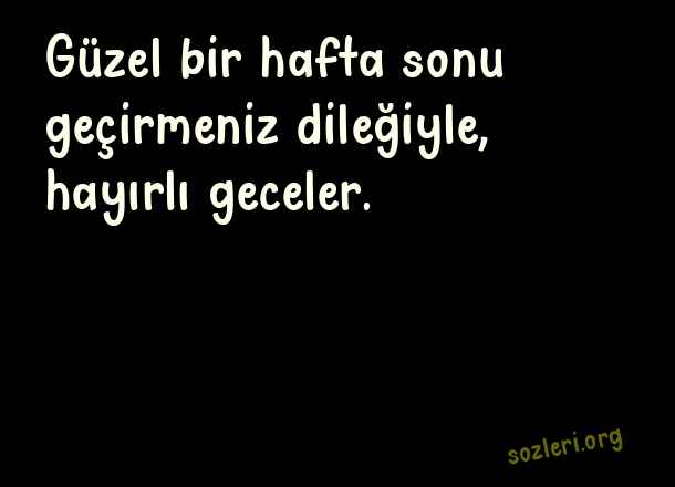 Güzel bir hafta sonu geçirmeniz dileğiyle, hayırlı geceler. ( Hayırlı Geceler )