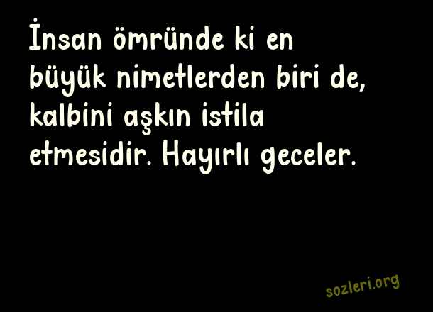 İnsan ömründe ki en büyük nimetlerden biri de, kalbini aşkın istila etmesidir. Hayırlı geceler. ( Hayırlı Geceler )