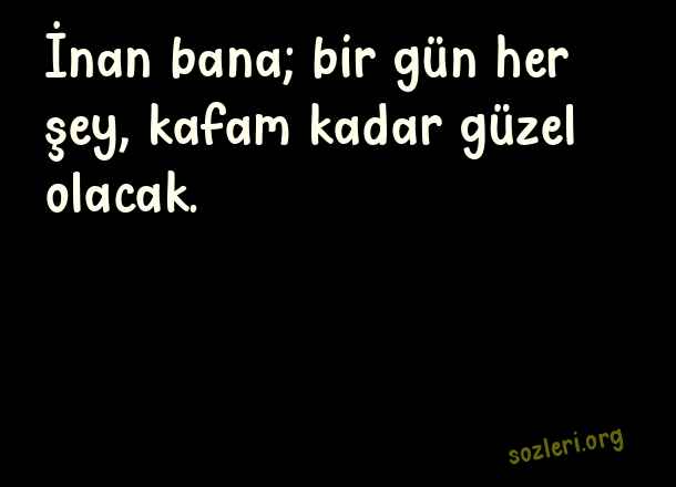 İnan bana; bir gün her şey, kafam kadar güzel olacak. ( Her Şey Güzel Olacak )