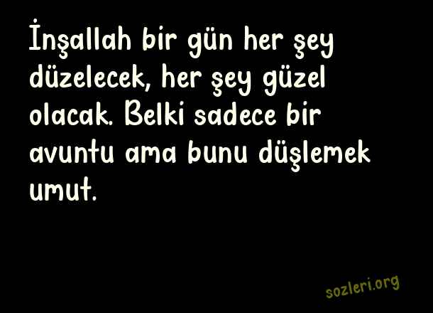 İnşallah bir gün her şey düzelecek, her şey güzel olacak. Belki sadece bir avuntu ama bunu düşlemek umut. ( Her Şey Güzel Olacak )