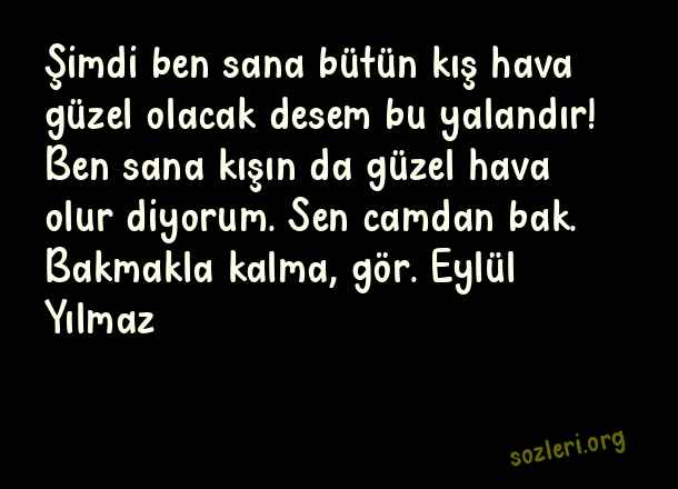 Şimdi ben sana bütün kış hava güzel olacak desem bu yalandır! Ben sana kışın da güzel hava olur diyorum. Sen camdan bak. Bakmakla kalma, gör. Eylül Yılmaz ( Her Şey Güzel Olacak )