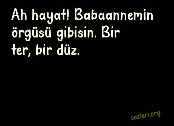 Ah hayat! Babaannemin - Hoş Sözler .. Ah hayat! Babaannemin örgüsü gibisin. Bir ter, bir düz. ( Hoş Sözler )