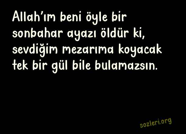 Allah’ım beni öyle bir sonbahar ayazı öldür ki, sevdiğim mezarıma koyacak tek bir gül bile bulamazsın. ( Hoş Sözler )
