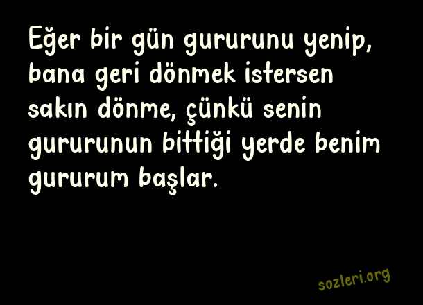 Eğer bir gün gururunu yenip, bana geri dönmek istersen sakın dönme, çünkü senin gururunun bittiği yerde benim gururum başlar. ( Hoş Sözler )