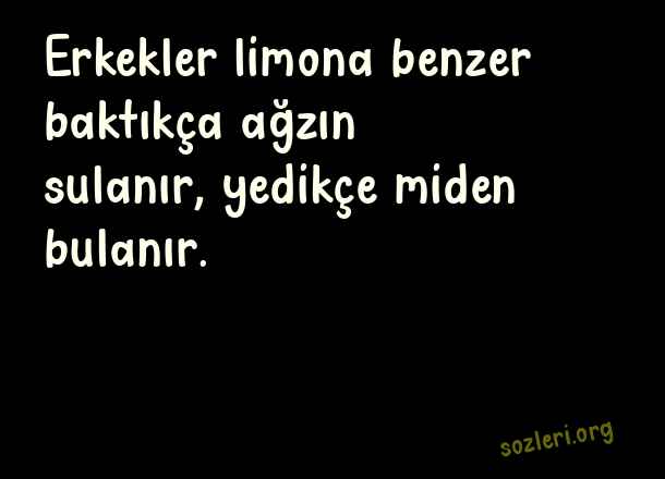 Erkekler limona benzer baktıkça ağzın sulanır, yedikçe miden bulanır. ( Hoş Sözler )