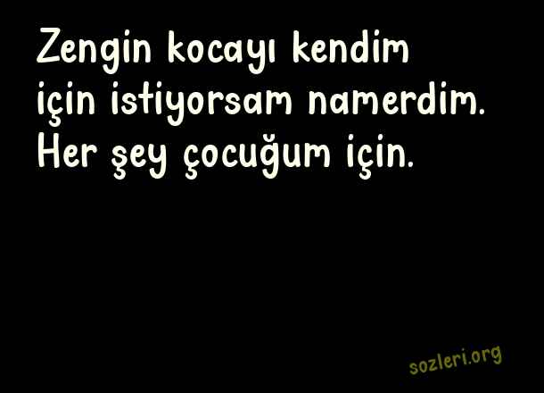 Zengin kocayı kendim için istiyorsam namerdim. Her şey çocuğum için. ( Hoş Sözler )