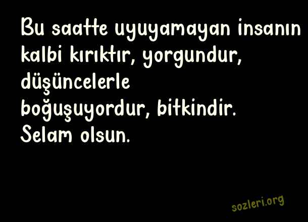 Bu saatte uyuyamayan insanın kalbi kırıktır, yorgundur, düşüncelerle boğuşuyordur, bitkindir. Selam olsun. ( Hüzünlü Gece )