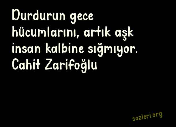 Durdurun gece hücumlarını, artık aşk insan kalbine sığmıyor. Cahit Zarifoğlu ( Hüzünlü Gece )