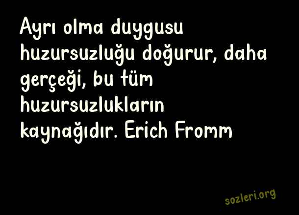 Ayrı olma duygusu huzursuzluğu doğurur, daha gerçeği, bu tüm huzursuzlukların kaynağıdır. Erich Fromm ( Huzursuzluk )