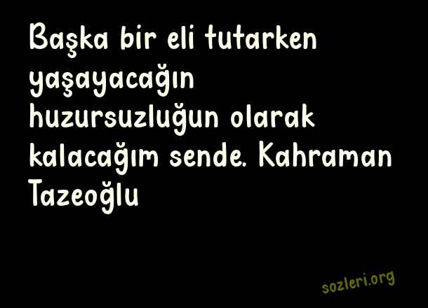 Başka bir eli tutarken yaşayacağın huzursuzluğun olarak kalacağım sende. Kahraman Tazeoğlu ( Huzursuzluk )