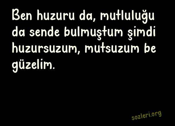 Ben huzuru da, - Huzursuzluk İle İlgili Sözler .. Ben huzuru da, mutluluğu da sende bulmuştum şimdi huzursuzum, mutsuzum be güzelim. ( Huzursuzluk )