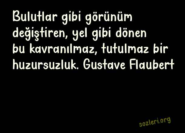Bulutlar gibi görünüm değiştiren, yel gibi dönen bu kavranılmaz, tutulmaz bir huzursuzluk. Gustave Flaubert ( Huzursuzluk )