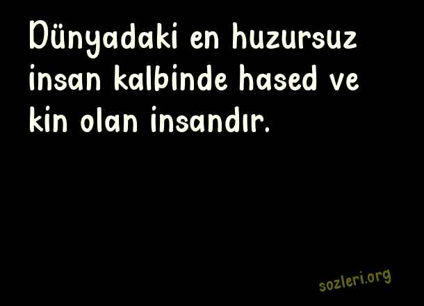 Dünyadaki en huzursuz insan kalbinde hased ve kin olan insandır. ( Huzursuzluk )