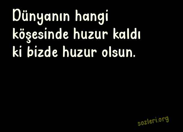 Dünyanın hangi köşesinde huzur kaldı ki bizde huzur olsun. ( Huzursuzluk )