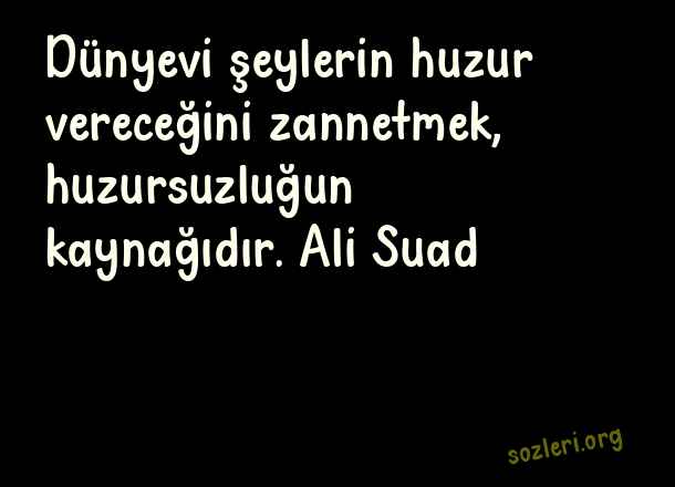 Dünyevi şeylerin huzur vereceğini zannetmek, huzursuzluğun kaynağıdır. Ali Suad ( Huzursuzluk )