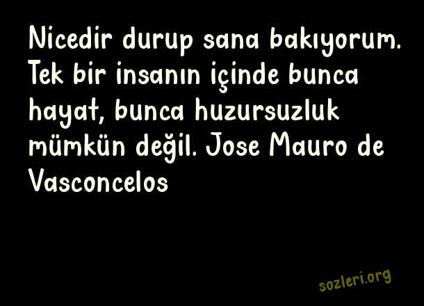 Nicedir durup sana bakıyorum. Tek bir insanın içinde bunca hayat, bunca huzursuzluk mümkün değil. Jose Mauro de Vasconcelos ( Huzursuzluk )