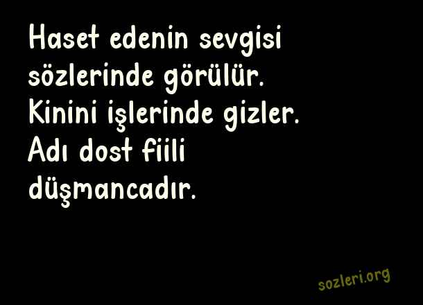 Haset edenin sevgisi sözlerinde görülür. Kinini işlerinde gizler. Adı dost fiili düşmancadır. ( Hz. Ali )