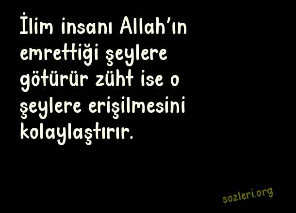 İlim insanı Allah’ın emrettiği şeylere götürür züht ise o şeylere erişilmesini kolaylaştırır. ( Hz. Ali )