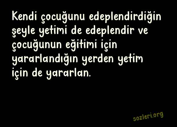 Kendi çocuğunu edeplendirdiğin şeyle yetimi de edeplendir ve çocuğunun eğitimi için yararlandığın yerden yetim için de yararlan. ( Hz. Ali )