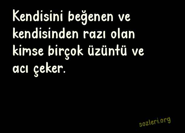 Kendisini beğenen ve kendisinden razı olan kimse birçok üzüntü ve acı çeker. ( Hz. Ali )