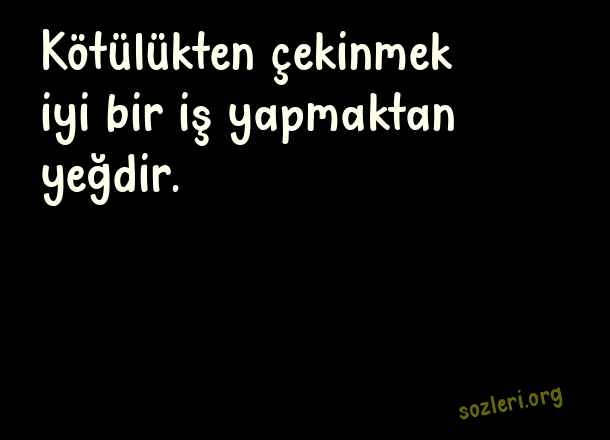 Kötülükten çekinmek iyi bir iş yapmaktan yeğdir. ( Hz. Ali )