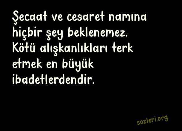 Şecaat ve cesaret namına hiçbir şey beklenemez. Kötü alışkanlıkları terk etmek en büyük ibadetlerdendir. ( Hz. Ali )