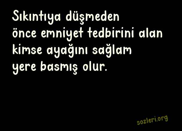 Sıkıntıya düşmeden önce emniyet tedbirini alan kimse ayağını sağlam yere basmış olur. ( Hz. Ali )