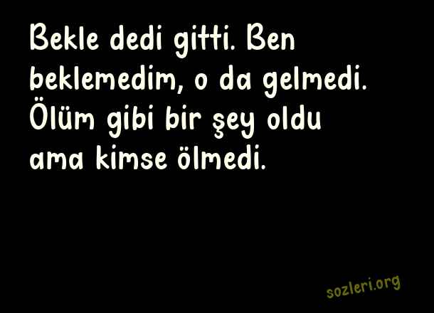 Bekle dedi gitti. Ben beklemedim, o da gelmedi. Ölüm gibi bir şey oldu ama kimse ölmedi. ( İlginç Sözler )