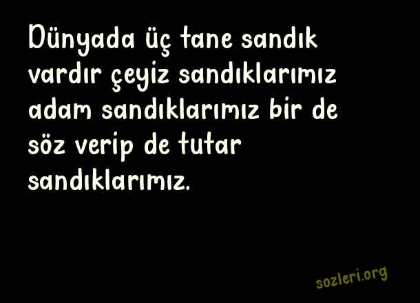 Dünyada üç tane sandık vardır çeyiz sandıklarımız adam sandıklarımız bir de söz verip de tutar sandıklarımız. ( İlginç Sözler )