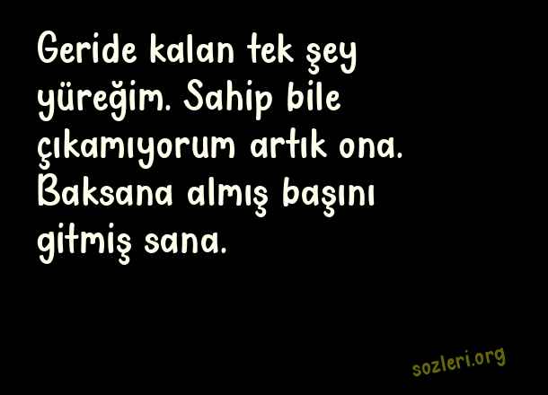 Geride kalan tek şey yüreğim. Sahip bile çıkamıyorum artık ona. Baksana almış başını gitmiş sana. ( İlginç Sözler )