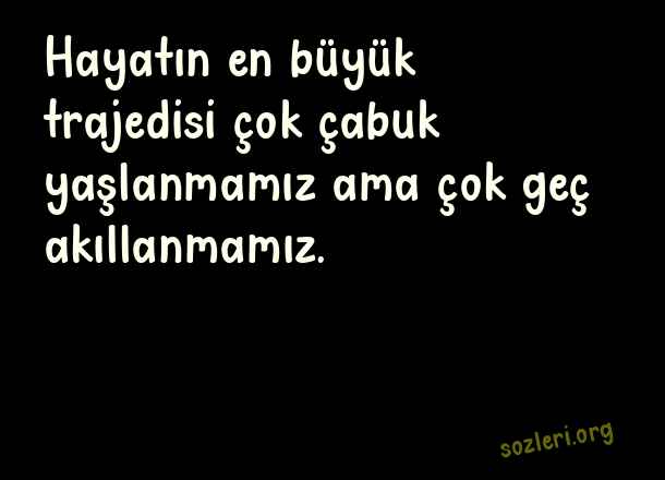 Hayatın en büyük trajedisi çok çabuk yaşlanmamız ama çok geç akıllanmamız. ( İlginç Sözler )
