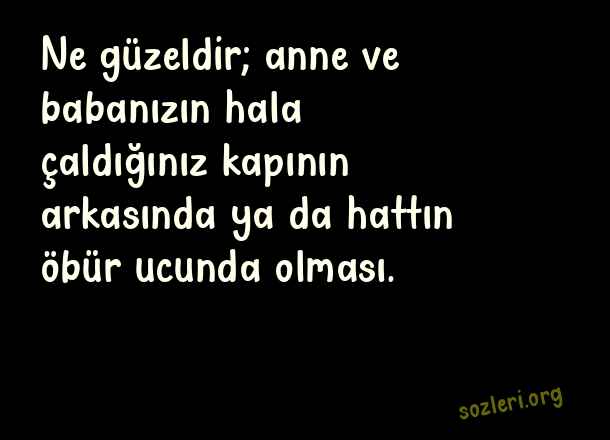 Ne güzeldir; anne ve babanızın hala çaldığınız kapının arkasında ya da hattın öbür ucunda olması. ( İlginç Sözler )