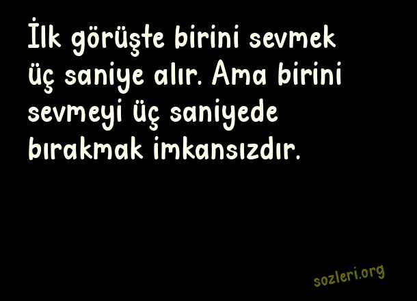 İlk görüşte birini sevmek üç saniye alır. Ama birini sevmeyi üç saniyede bırakmak imkansızdır. ( İlk Görüşte Aşk )