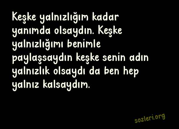Keşke yalnızlığım kadar yanımda olsaydın. Keşke yalnızlığımı benimle paylaşsaydın keşke senin adın yalnızlık olsaydı da ben hep yalnız kalsaydım. ( İmkansız Aşk )
