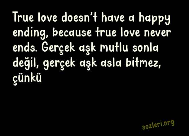 True love doesn’t have a happy ending, because true love never ends. Gerçek aşk mutlu sonla değil, gerçek aşk asla bitmez, çünkü… ( İngilizce Aşk )