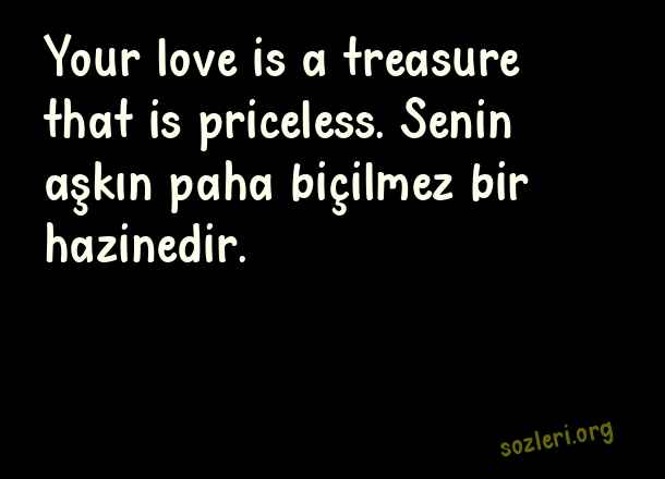 Your love is - İngilizce Aşk Sözleri .. Your love is a treasure that is priceless. Senin aşkın paha biçilmez bir hazinedir. ( İngilizce Aşk )