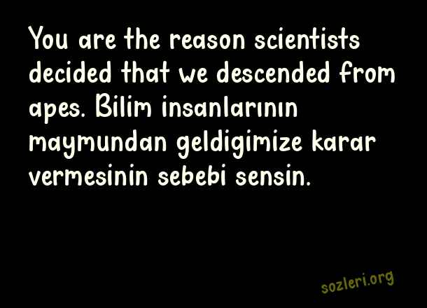 You are the reason scientists decided that we descended from apes. Bilim insanlarının maymundan geldigimize karar vermesinin sebebi sensin. ( İngilizce Laf Sokucu Sözler )