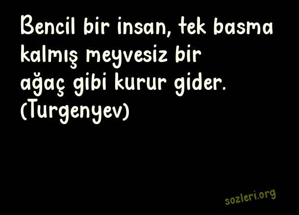 Bencil bir insan, tek basma kalmış meyvesiz bir ağaç gibi kurur gider. (Turgenyev) ( İnsan Hakları )