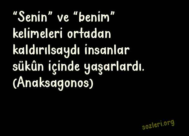 “Senin” ve “benim” kelimeleri ortadan kaldırılsaydı insanlar sükûn içinde yaşarlardı. (Anaksagonos) ( İnsan Hakları )