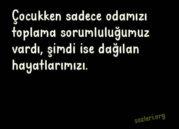 Çocukken sadece odamızı toplama sorumluluğumuz vardı, şimdi ise dağılan hayatlarımızı. ( İnstagram Duvar Yazıları )