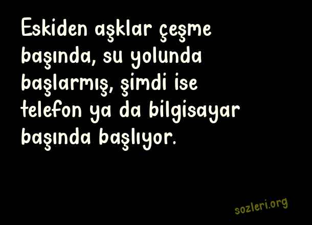 Eskiden aşklar çeşme başında, su yolunda başlarmış, şimdi ise telefon ya da bilgisayar başında başlıyor. ( İnstagram Duvar Yazıları )