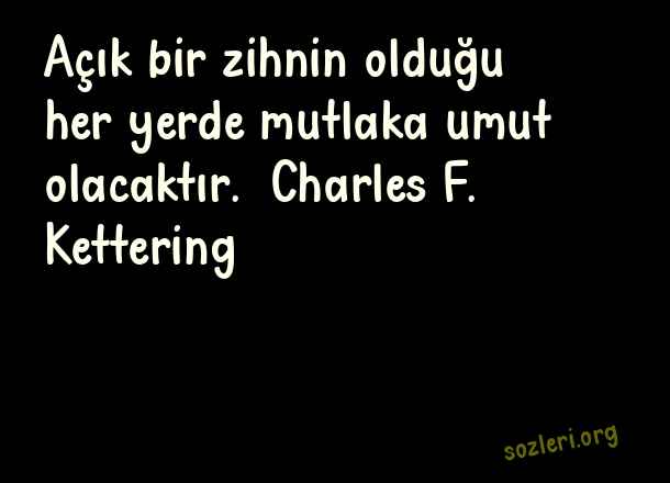 Açık bir zihnin olduğu her yerde mutlaka umut olacaktır. Charles F. Kettering ( İşyeri )