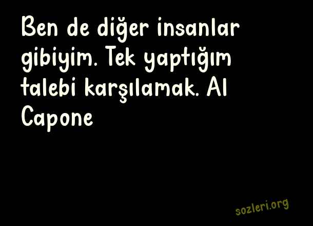 Ben de diğer - İşyeri Sözleri .. Ben de diğer insanlar gibiyim. Tek yaptığım talebi karşılamak. Al Capone ( İşyeri )