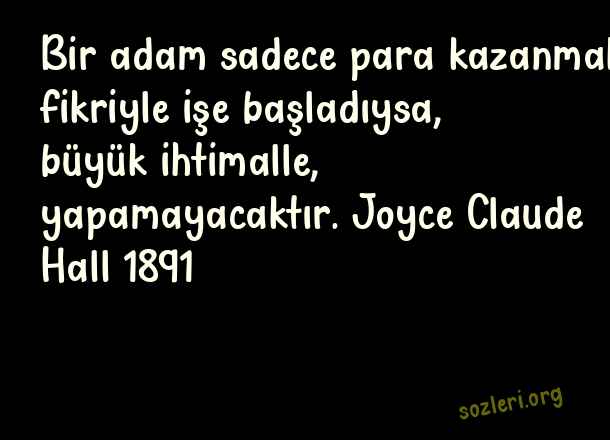 Bir adam sadece para kazanmak fikriyle işe başladıysa, büyük ihtimalle, yapamayacaktır. Joyce Claude Hall 1891 ( İşyeri )