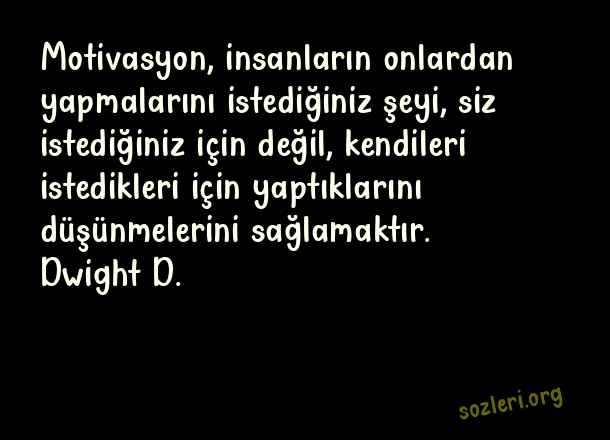 Motivasyon, insanların onlardan yapmalarını istediğiniz şeyi, siz istediğiniz için değil, kendileri istedikleri için yaptıklarını düşünmelerini sağlamaktır. Dwight D. ( İşyeri )