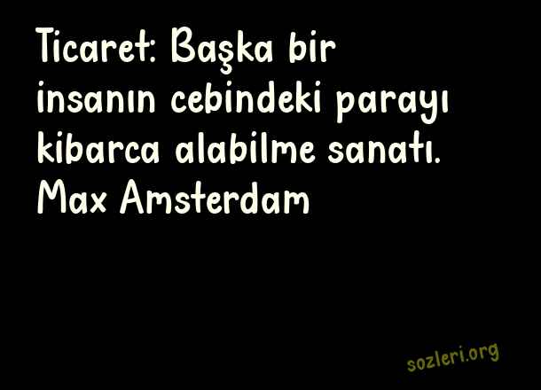 Ticaret: Başka bir insanın cebindeki parayı kibarca alabilme sanatı. Max Amsterdam ( İşyeri )