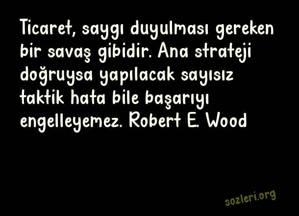 Ticaret, saygı duyulması gereken bir savaş gibidir. Ana strateji doğruysa yapılacak sayısız taktik hata bile başarıyı engelleyemez. Robert E. Wood ( İşyeri )
