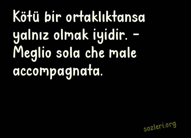 Kötü bir ortaklıktansa yalnız olmak iyidir. – Meglio sola che male accompagnata. ( İtalyanca Aşk )