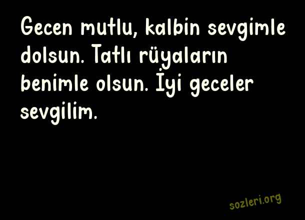 Gecen mutlu, kalbin sevgimle dolsun. Tatlı rüyaların benimle olsun. İyi geceler aşkım.