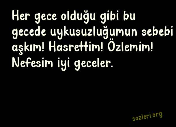 Her gece olduğu gibi bu gecede uykusuzluğumun sebebi aşkım! Hasrettim! Özlemim! Nefesim iyi geceler. ( Whatsapp İyi Geceler )